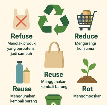Dengan menerapkan Refuse, Reduce, Reuse, Recycle, dan Rot, setiap orang bisa: